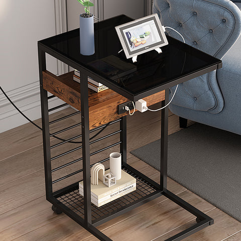 USB PORT AND AC OUTLET: This side Table has 2 AC outlets, 2 USB ports allowing you to charge your phone, iPad and laptop from your couch or bed.